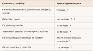 - Periodo de espera: tiempo que debe pasar antes de que ciertas coberturas entren en vigor.
